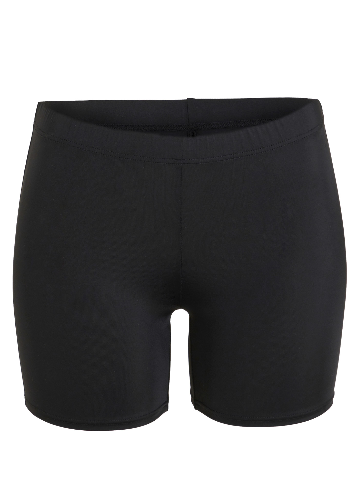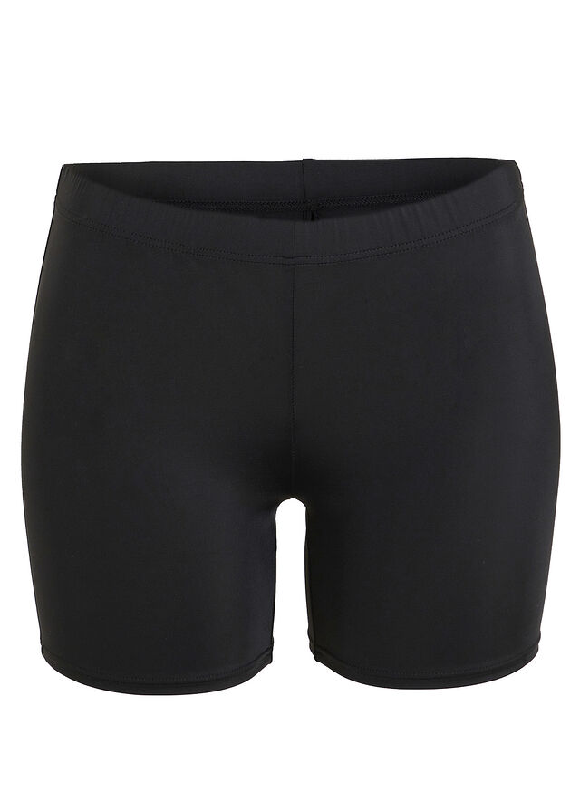 Llega de la cintura a bastantes cm de las ingles. Tela fina con pequeño forro protector. Muy cómodo y discreto para clases de aquagym...