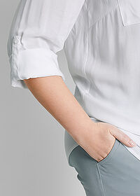 Muy bonita, aunque se arruga mucho! Aún así, la tela es buena y el color precioso. Que traiga botones en las mangas para llevarlas subidas es un acierto, y es una gran apuesta para la primavera