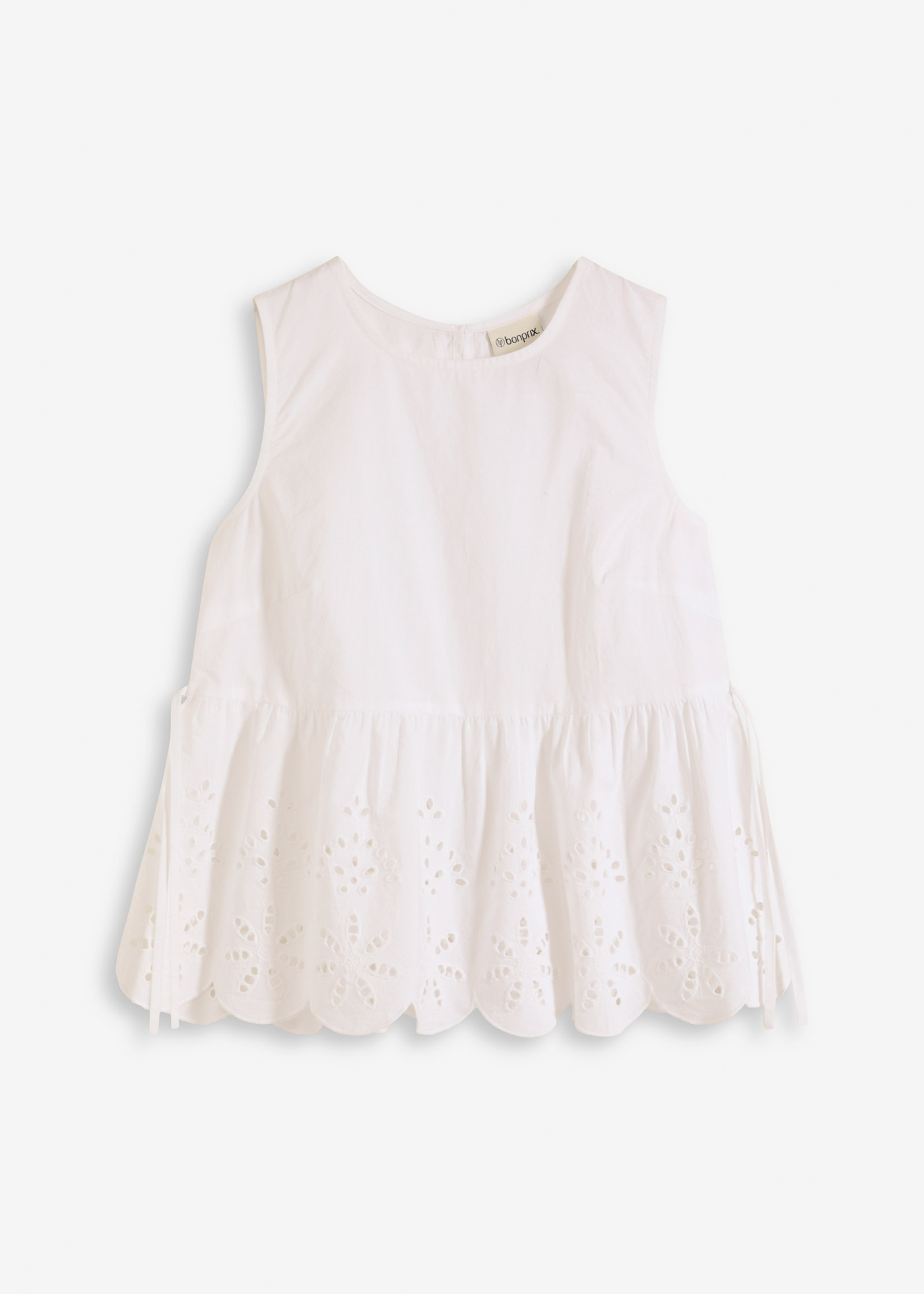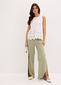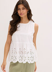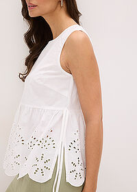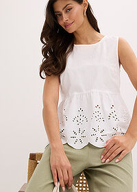 Blusa sin mangas con abertura y bordado calado