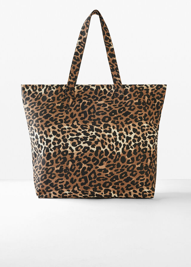 Bolso tipo shopper de lona con estampado de leopardo