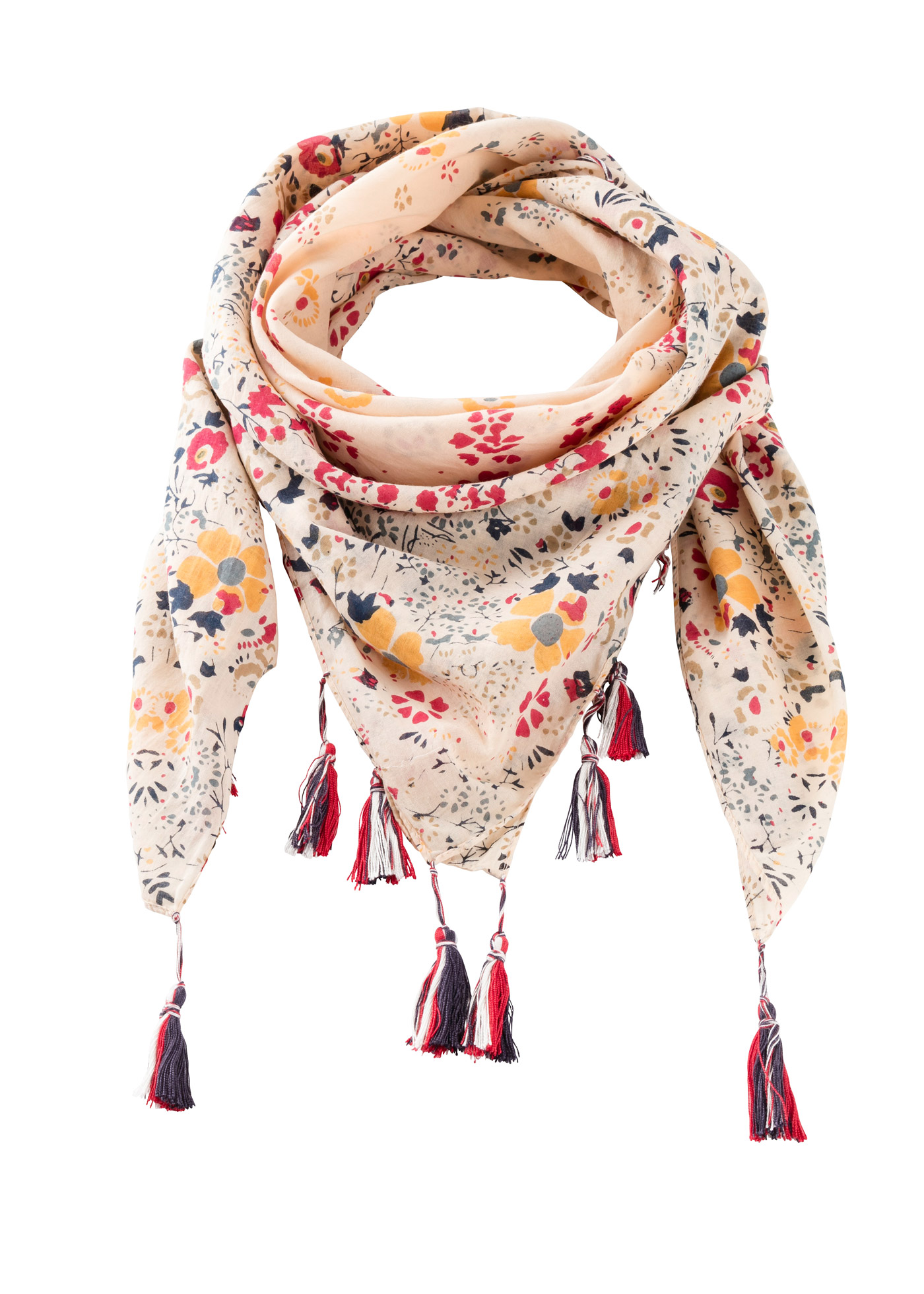 Bufanda floral con borlas