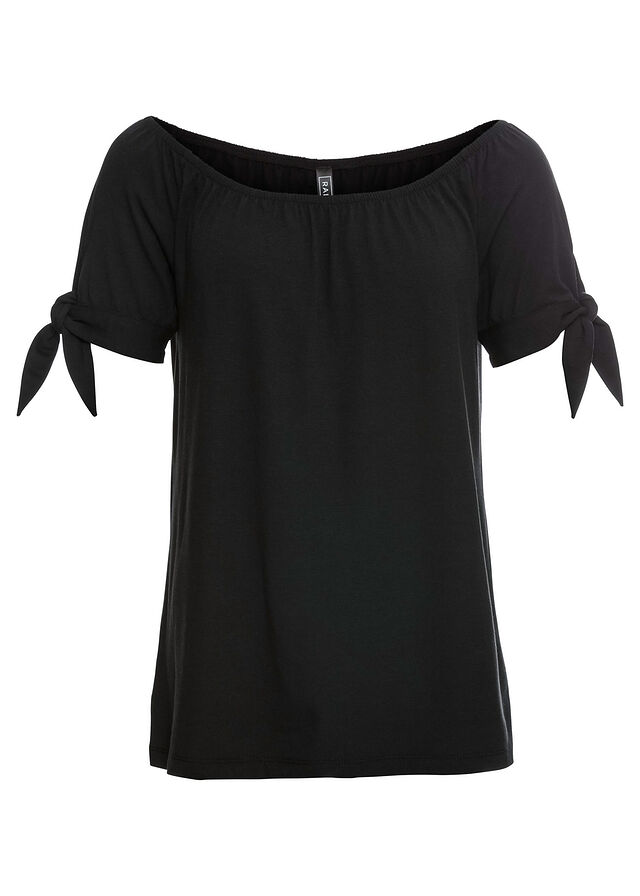 Camiseta con escote bañera y detalle de lazo