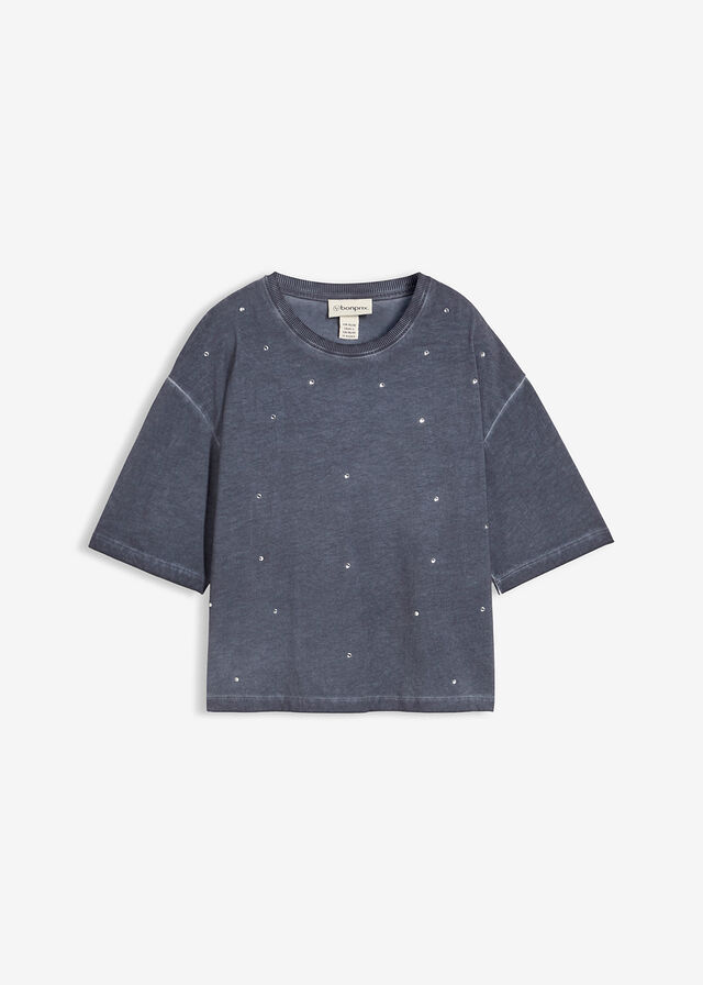 Camiseta con piedras brillantes de algodón puro