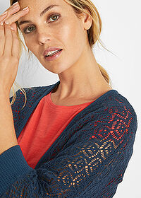 Chaqueta larga de punto con patrón calado