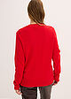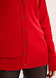 La chaqueta es pesada y muy larga de mangas. El escote demasiado largo y abierto. El color de un rojo muy vivo.