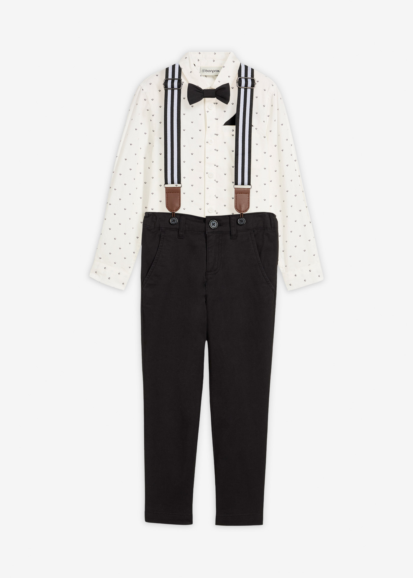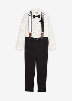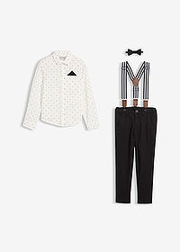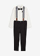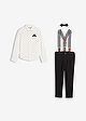 Opiniones de clientesConjunto de camisa de manga larga, pantalón elástico, tirantes y pajarita (4 piezas)