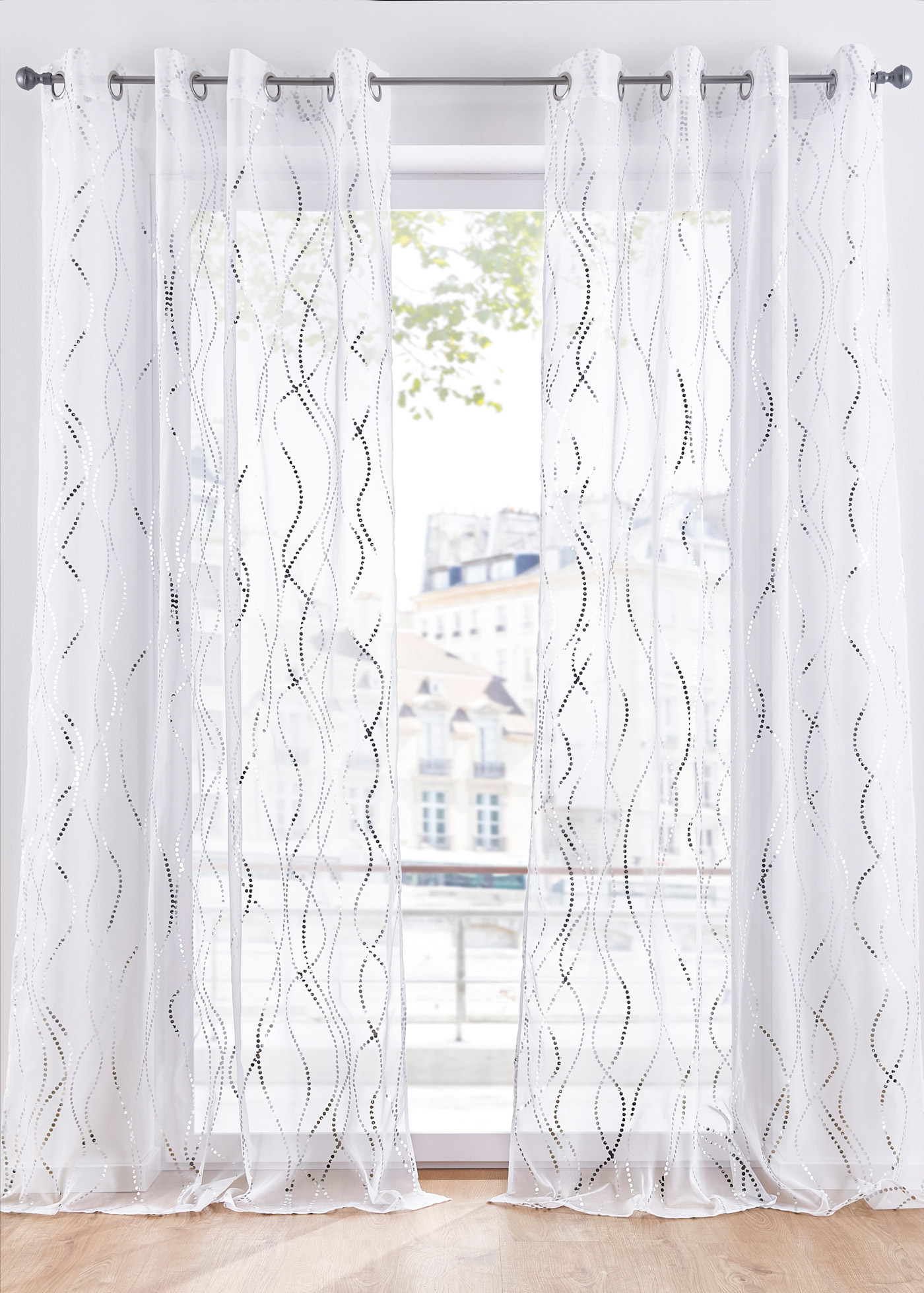 Opiniones de clientesCortina con estampado brillante (1 unidad), ojales