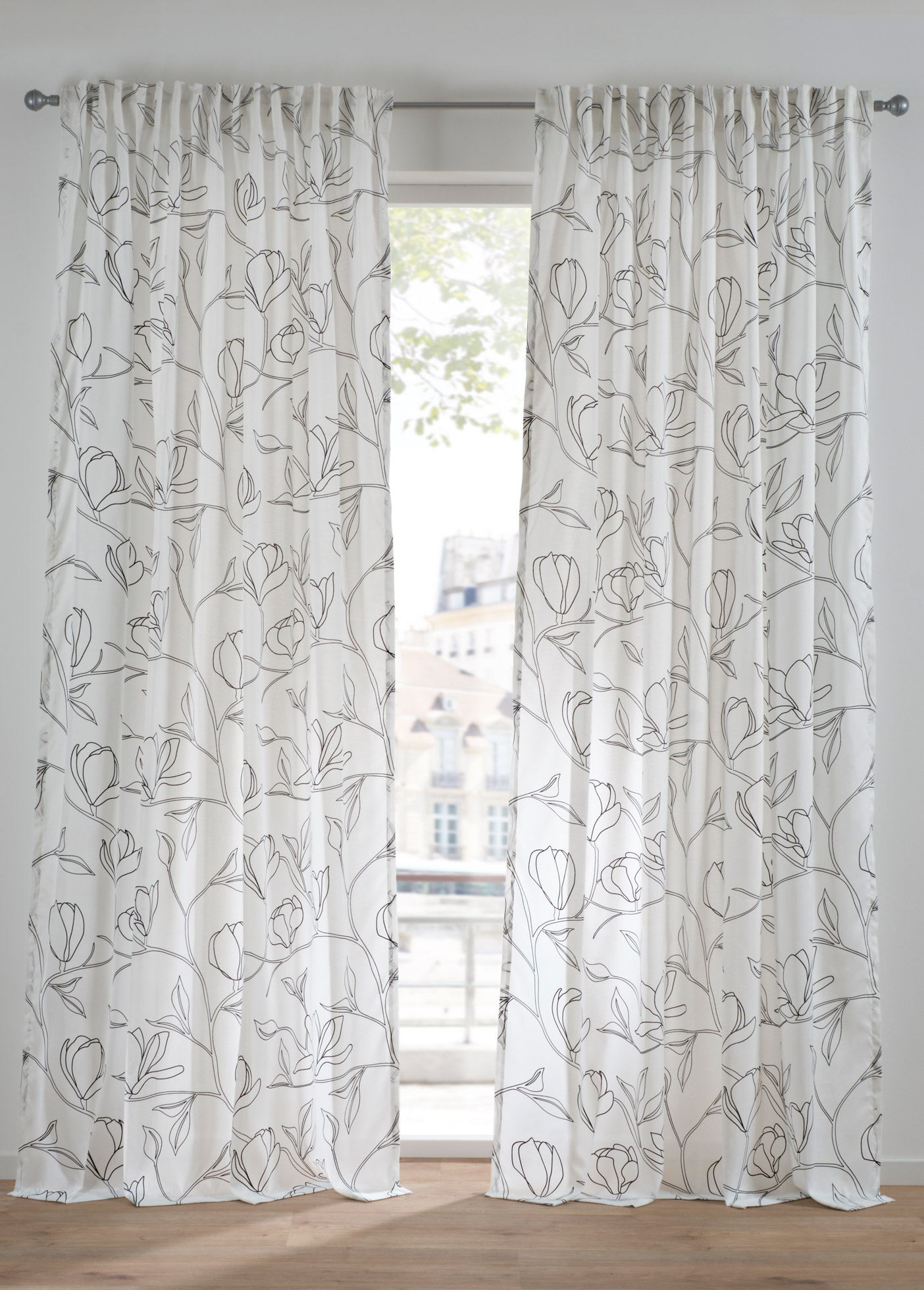 Opiniones de clientesCortina de poliéster reciclado con estampado de hojas (1 unidad), cinta multifunción