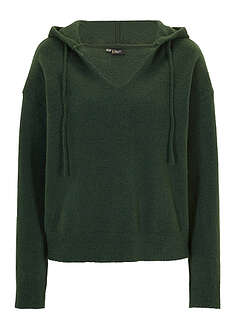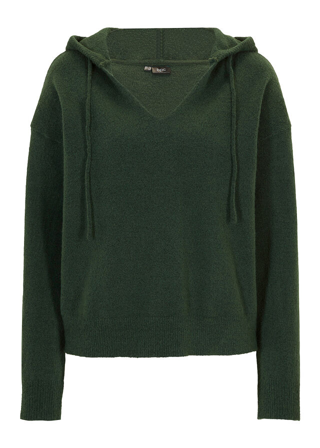 Jersey de punto con escote en V y capucha