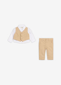Juego de trajes con camisa, chaleco y pantalones de algodón puro (3 piezas)