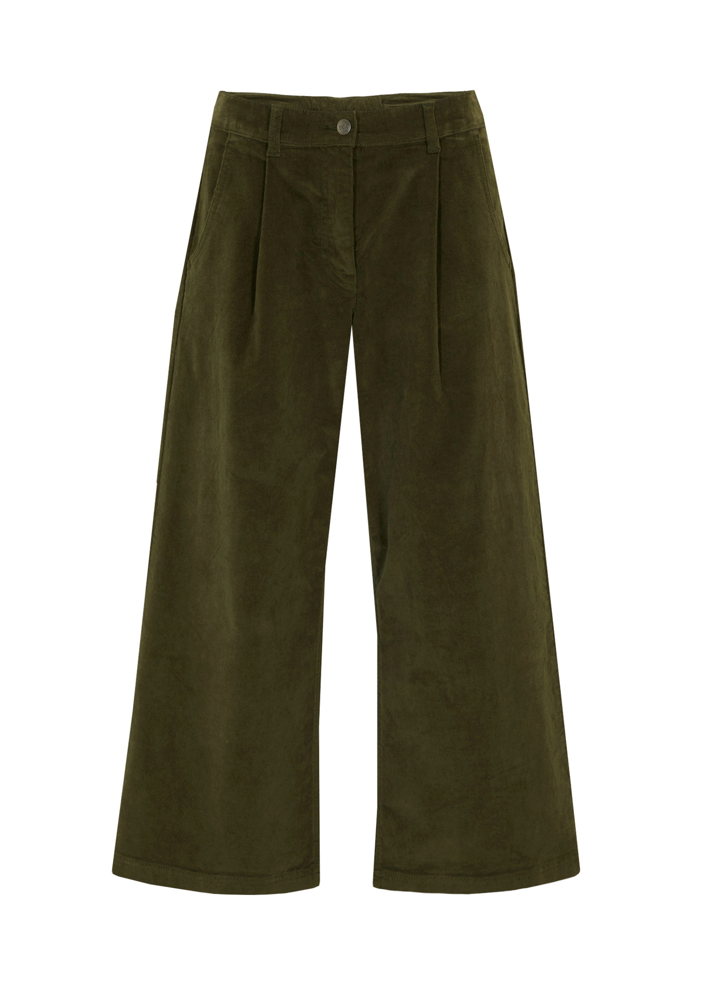 Pantalón ancho de pana elástica con cintura cómoda high waist, largo 7/8, Largo. regular
