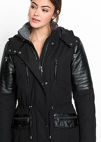 Parka larga con inserciones de piel sintética
