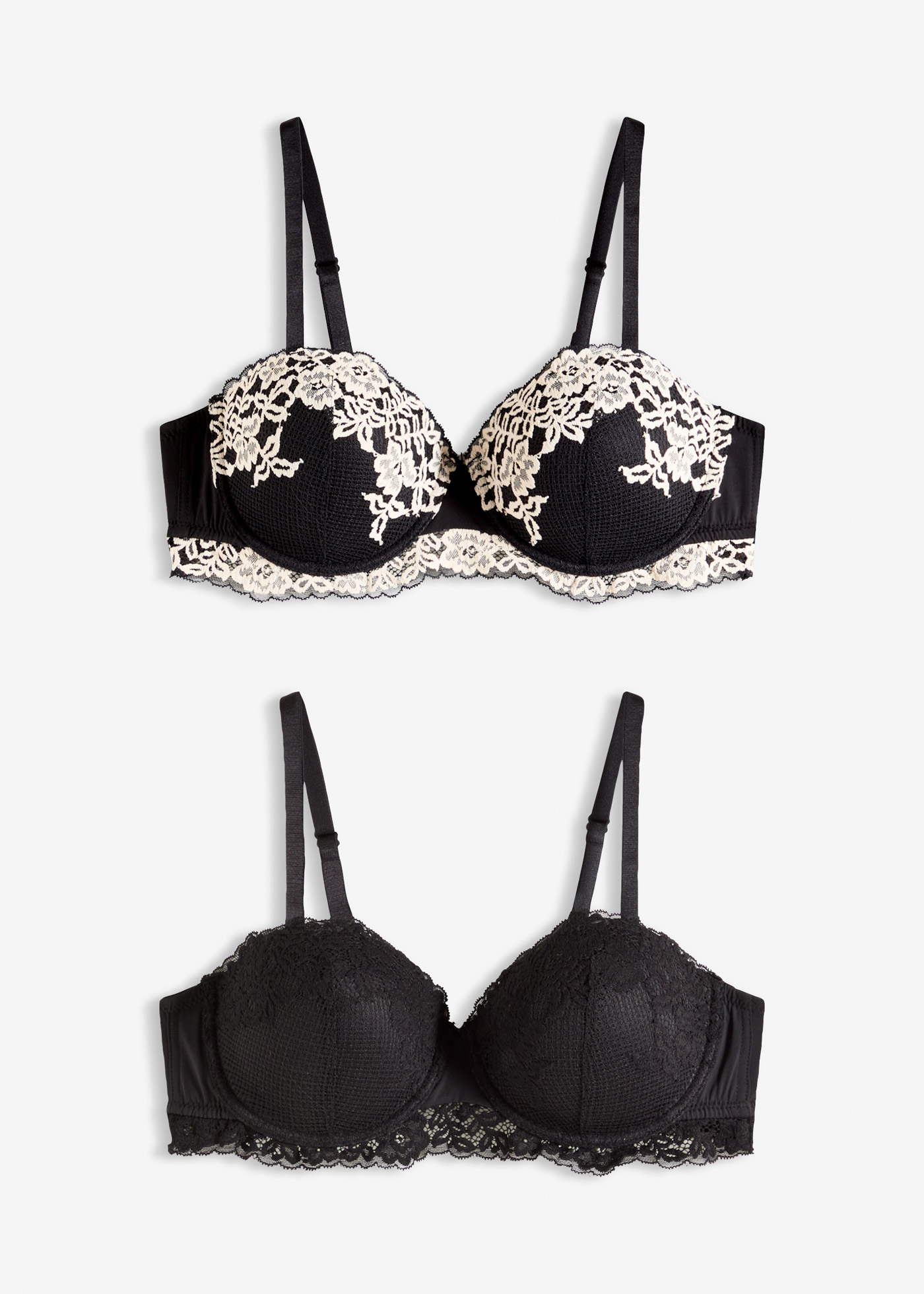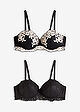 Sujetador tipo balconette de encaje bicolor (2 unidades), Copa C