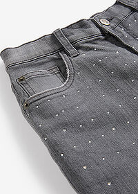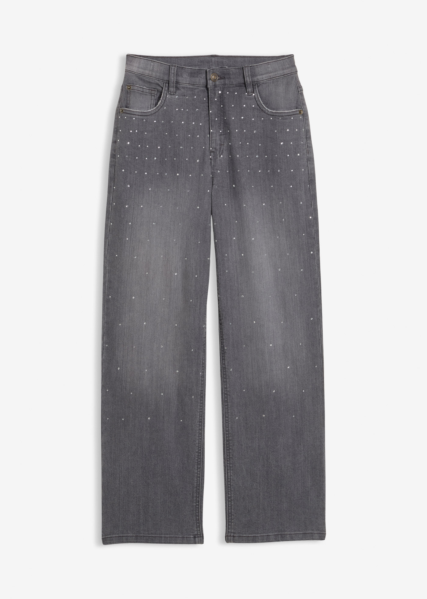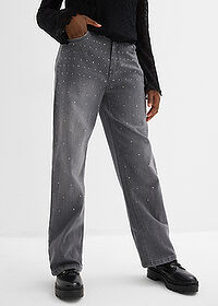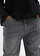 Vaqueros con perneras anchas, piedras brillantes y talle medio
