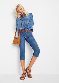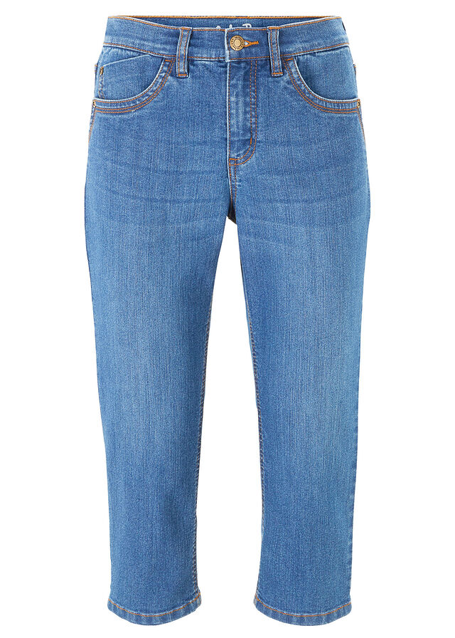 Vaqueros elásticos de corte capri, Largo. regular