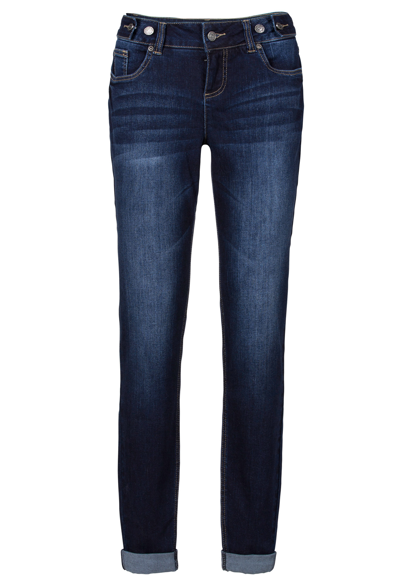 Vaqueros elásticos tipo boyfriend con cintura media, Largo. regular