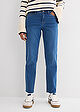 Vaqueros rectos de algodón orgánico con talle medio y largo cropped, Largo. regular