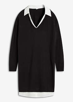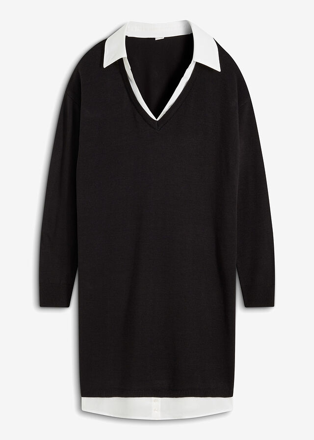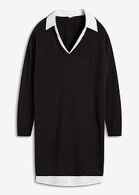 Vestido de punto con inserto de blusa, Largo regular