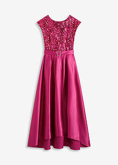 Vestido largo de satén brillante con encaje, Largo. regular