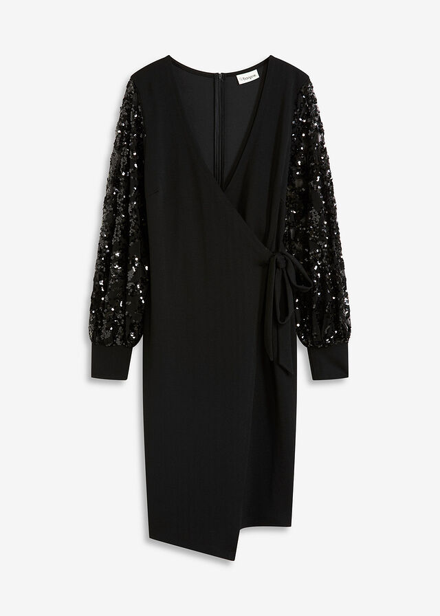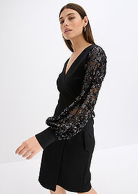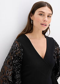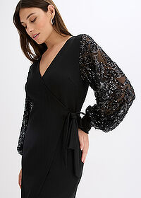 Vestido midi con bordado de lentejuelas en las mangas