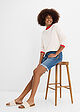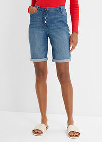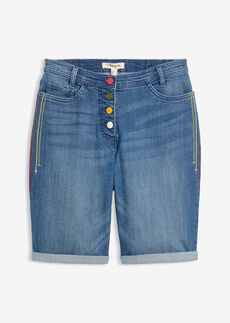 Bermudas vaqueras de talle medio con bordado y cinturilla elástica